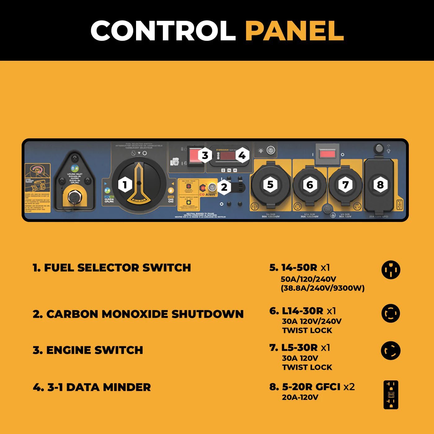 - (1) 14-50R 120V/240V 50A (38.8A/240V/9300W)