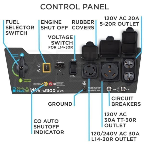 Westinghouse WGen5300DFcv – 5300 Watt Dual-Fuel Portable Generator w/ RV Outlet & CO Sensor (49-State)